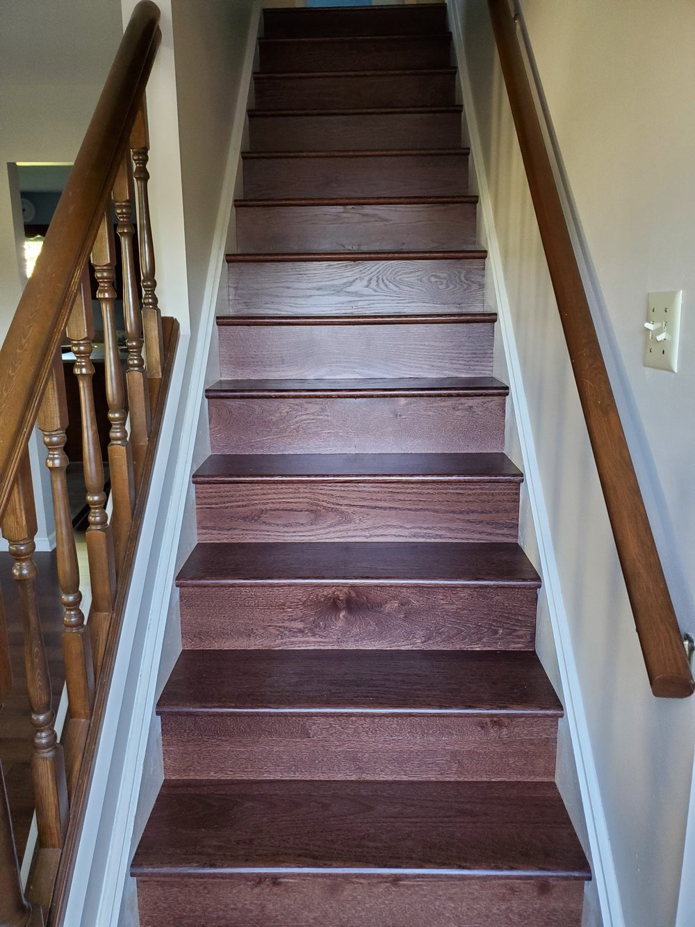We also offer stair retread systems from EZ Tread. If you are tired of your carpeted stairs and love the look of wood steps, we can do that for you. They offer select colors options or you can customize your tread and riser colors to match a new or existing floor.